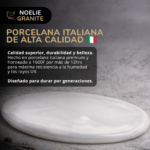 Fabricada con porcelana italiana premium y horneada a 1600°F por más de 12 horas, creando una unión permanente que garantiza durabilidad, resistencia y belleza por generaciones.